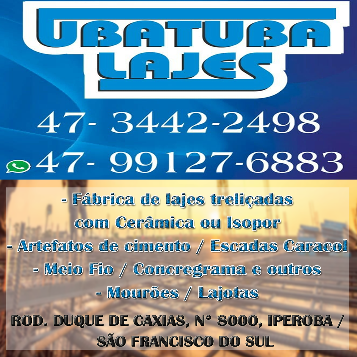 Contato: (47) 3442 - 2498 / (47) 9 9127 - 6883